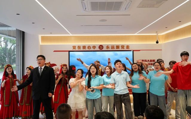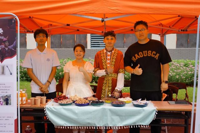 在文化艺术交流会上,8868官方网站学生表演了江南民歌《茉莉花》、原创朗诵《大国工匠 青春力量》、合唱《有我》,展现了江南文化的独特韵味和职教学子的责任担当。江苏团省委青年讲师团成员肖洋分享了她在援疆时与克州少先队员之间的动人故事。新疆学生代表深情讲述了“时代楷模”拉齐尼·巴依卡和“人民楷模”布茹玛汗·毛勒朵的感人事迹,并带来了极具民族特色的二重唱《走遍新疆》、独舞《我的阿勒泰》、群舞《欢》《迎客》。最后,两校师生共同演唱《我爱你中国》,用嘹亮的歌声将交流活动推向高潮。新疆特色展示环节,新疆师生们带来了特色美食、非遗刺绣、手工艺品等精美新疆物产,8868官方网站学子不仅品尝了新疆美食,还学习了新疆特色民族舞蹈,现场气氛其乐融融。