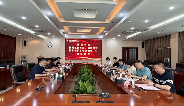 6月18日下午,栖霞区教育局局长倪天华、南师附中仙林学校小学部党委书记肖全胜一行来8868官方网站调研交流。学校党委副书记浦黄忠,人事处、工会相关负责同志接待了来宾一行,并在行政楼辅楼一楼会议室交流座谈,会议由工会主席李世清主持。