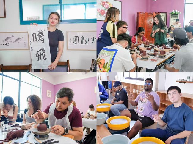 与此同时,丰富的文化体验活动让学员们沉浸式感受中华文明的魅力。在南京博物院,六朝青瓷讲述着千年的匠心传承;紫砂工坊内,学员们亲手体验传统制陶技艺;书法课堂上,笔墨纸砚间流淌着东方美学的神韵。特别值得一提的是云锦数字化设计项目,将传统纹样与现代技术完美结合。“看到同学们用电脑设计出既传统又现代的云锦图案,我感受到了文化创新的无限可能。”领队教师王月玥如此评价道。