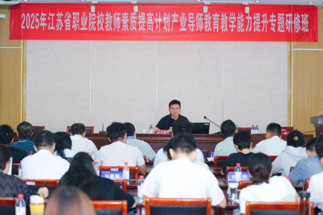 杨燕在致欢迎辞时强调了产业导师在职业教育中的关键作用,并介绍了本次研修班将通过“理论+实践”“校企协同”“AI赋能”等创新模式。相关负责人介绍了培训课程安排及考核要求。本次研修班为期14天,培训以校企协同,AI赋能教学创新为培训亮点,课程设计上突出校企双元主导、数字化能力提升、名师工匠引领等三大特色。作为江苏省职业院校教师素质提高计划的重要项目,本次研修班将为全省职业院校培养“懂产业、精教学、善创新”的高素质产业导师,进一步推动职业教育与产业需求同频共振,为江苏省职业教育高质量发展赋能。