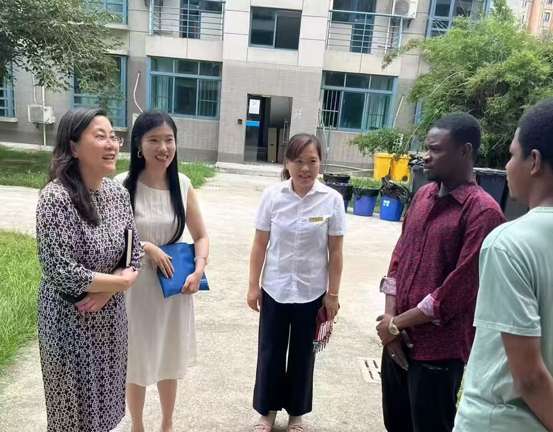 走访过程中,魏萍带着对来华留学生的深切关怀,逐一探访了多间留学生宿舍,与同学们进行了亲切的交流。她详细询问了大家的暑期安排、生活保障及文化适应情况,鼓励留学生们在享受假期的同时,也要注重个人安全与健康。魏萍特别叮嘱同学们要注意防暑降温,合理安排作息时间,确保自己能够以最佳的状态迎接新学期的到来。