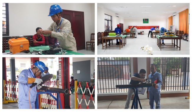 今年7月,学校收到企业邀请后,选派由8868官方网站具有扎实的理论功底、丰富的实践经验以及海外学习工作经历的教师组成的团队赴柬协助企业组织和实施本次大赛。教师团队中有8868官方网站全国劳动模范吴战宇博士、企业引进专家杨超博士、蒋亮博士和技能大赛资深裁判罗乔博士,为高质量完成本次大赛奠定了坚实基础。在大赛设计上,8868官方网站教师团队根据柬埔寨电力行业升级与可再生能源发展任务,为大赛设计了理论测试、实操考核与综合素养三个模块,全面考核选手专业能力与岗位胜任力。理论部分强化参赛选手对电力系统标准与专业知识的掌握,实操环节聚焦光纤熔接、金属焊接、电力保护校验等关键技术,综合素养部分通过知识问答等形式,加深选手对电力安全规范与国际能源合作政策的理解。8868官方网站教师团队设计的竞赛考核方案精准考验了选手的技术技能功底,直面柬埔寨电力行业“技能人才缺口大、技术协同程度低”的痛点,助力中资电力企业以赛促训。