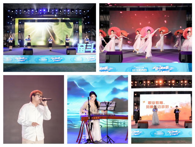 晚会在乐队的激情热场中拉开序幕,高亢的嗓音与强劲的节奏瞬间点燃全场;一首原创歌曲《艺路向南》充分展现了艺术学子的音乐才华和创作能力,让观众在音符的跃动中感受南工艺术学院的魅力;随后,《我和我的祖国》等一首首脍炙人口又深受青年学生喜爱的歌曲轮番唱响,从深情磅礴到清新灵动,旋律的变换牢牢牵动着观众们的心弦,掌声与合唱声浪此起彼伏;古筝演奏《彝族舞曲》旋律婉转悠扬,浓郁的民族风情萦绕现场,为观众营造出一个如诗如画的音乐世界;唯美典雅的古风群舞《青春下的红油伞》与活力四射的街舞《闪耀青春》相继登场,一静一动,以迥异的艺术风格共同诠释了青春的多元色彩;朗诵节目《闪耀吧,青春的火光》与《职业教育,风景这边亦好》深情演绎,以铿锵之音抒发了青春理想与职教情怀,引发现场强烈共鸣。