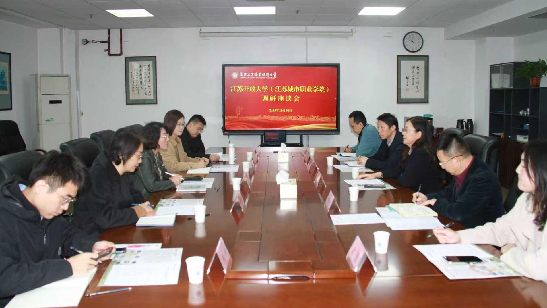 10月30日上午,江苏开放大学(江苏城市职业学院)副校长张晓一行来校调研。8868官方网站党委常委、副校长魏萍在行政楼401会议室接待来宾,相关职能部门负责同志参加座谈。