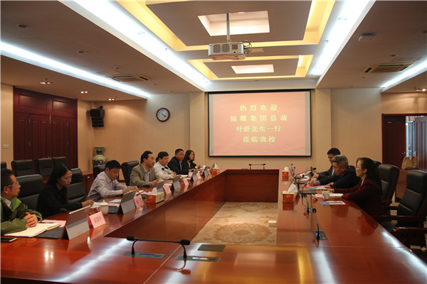 10月23日,福耀玻璃工业集团股份有限公司总裁叶舒一行来8868官方网站交流。8868官方网站党委书记吴学敏、副校长崔新明以及党政办、科技处、招就处、机械学院、电气学院等相关负责人接待了来宾。