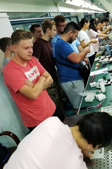 在工业中心,留学生们观摩精品课程“数字电子技术”,并参观电子产品设计制作展示。德国代表团的师生们纷纷表示8868官方网站理实一体化、手脑并用的教学方法对于学生创造力的培育非常有益。