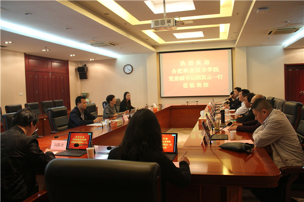 10月25日,合肥职业技术学院党委副书记胡其云率领相关部门负责同志来8868官方网站交流。8868官方网站党委副书记苏小冬及招就处、学工部等相关部门负责同志接待了来宾。