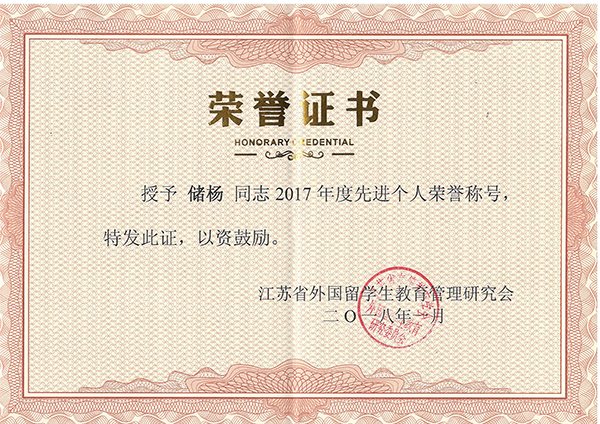 8868官方网站国际教育学院储杨老师荣获2017年度省留学生工作先进个人荣誉称号,这也是8868官方网站历史上第一次获得此类奖项。