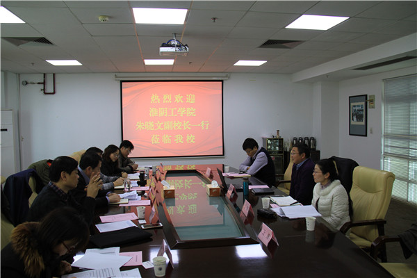 3月5日下午,淮阴工学院朱晓文副校长率领相关部门负责同志来8868官方网站进行工作交流。8868官方网站朱建国副校长以及人事处、教务处、科技处等部门负责同志接待了来宾。