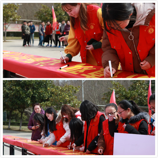 启动仪式上,校团委实践部、经济管理学院金龙同学作为优秀志愿者代表,向全校同学发出了“弘扬雷锋精神,做向上向善好青年”倡议,号召大家学习雷锋从自己做起、从身边的事做起,做到诚实守信、敬业奉献、包容豁达、和善仁爱,成为社会主义核心价值观的倡导者、传播者和实践者。随后,团委韩非老师带领全体青年志愿者宣读志愿者誓词,激励更多同学加入志愿者队伍。团委副书记黄滢老师就本次学雷锋活动月的活动安排做了简要介绍,希望大家在学雷锋活动中当表率、做示范。仪式最后进行了“学习雷锋精神,争做文明青年”全体志愿者代表签名活动,同学们认真在横幅上签下自己的名字,表达了自己对雷锋同志的崇高敬意,大家纷纷表示,要迅速行动起来,积极投身到学雷锋活动中。仪式结束后,各志愿者服务队同时赴既定场地开展学雷锋志愿服务活动。