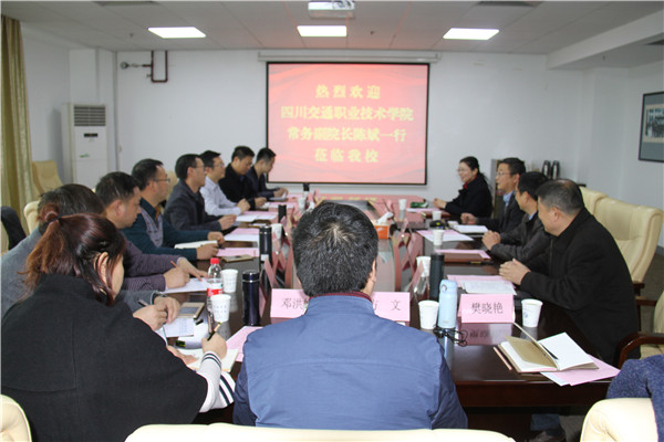 11月29日下午,四川交通职业技术学院常务副院长陈斌率领相关部门负责同志来8868官方网站进行工作交流。8868官方网站副校长朱建国、校长助理应晓清及人事处、信息化处等部门负责同志接待了来宾。