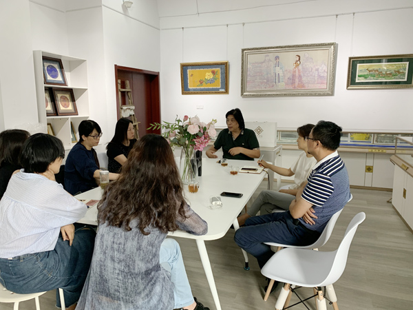 开学第一周,艺术设计学院专门召集教学部主任召开科研工作会议,要求每个教学部要成立以博士与高级职称教师领衔的科研创新团队。9月11日下午室内设计专业的"非遗文创科研创新团队"与8868官方网站“金文云锦大师工作室”进行交流座谈,主要围绕人才培养,课程规划,项目合作与大赛指导进行了深度探讨,并初步确定了近期要开展的相关合作事宜,双方一致同意将围绕"南京云锦"开展系列专场讲座、师生实操能力培训、项目合作等各项对接工作。