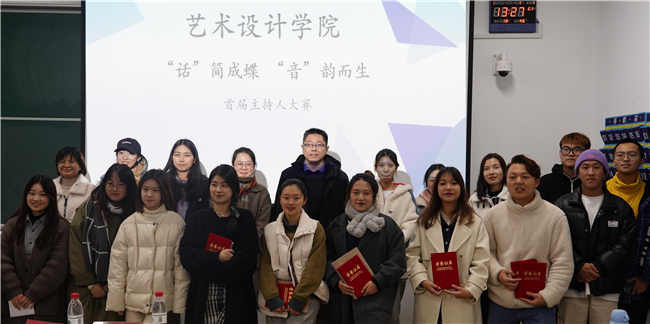为提升校园文化氛围,提高艺术设计学院学生的综合素质,展示大学生的文化艺术素质和健康向上的精神风貌,为学校各项活动培养主持人才,给热爱播音与主持艺术的同学们提供展示自我的机会,12月21日中午,艺术设计学院举办了“话”茧成蝶“音”韵而生——艺术设计学院首届主持人大赛。本次比赛共52名同学报名参与,经过初赛角逐,15名同学脱颖而出进入决赛。决赛由天堂校区广播台负责人吴小树同学主持,艺术设计学院党总支副书记高原、全体辅导员担任评委,100余位同学现场观赛。